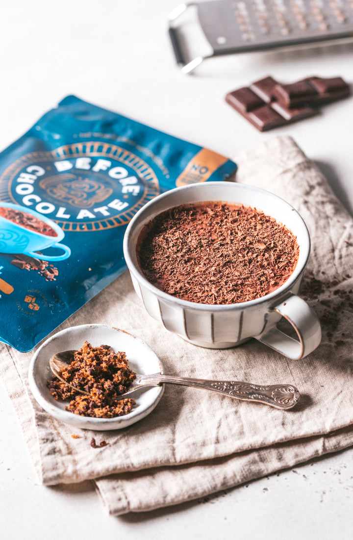 Unlike the mass-produced options, we keep it real with minimal and natural ingredients, We DON’T use processed cocoa powder, remove the rich cacao butter or use refined sugar. We simply grind small batches of cacao beans into a rich paste and sweeten naturally to create an indulgent hot chocolate experience like no other.